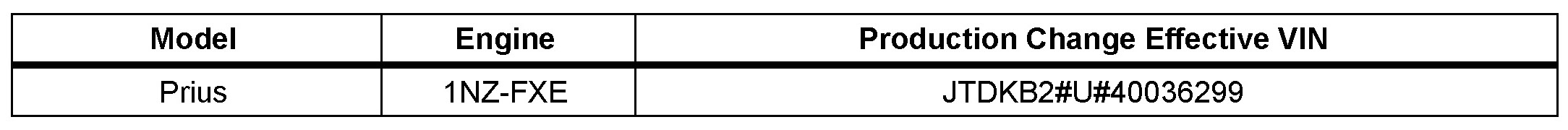 - 2004 model year Prius vehicles produced BEFORE the Production Change Effective VINs shown below.