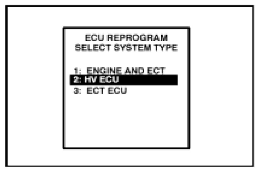 9. Select "2. HV ECU" from the "ECU REPROGRAM SELECT SYSTEM TYPE" menu.
