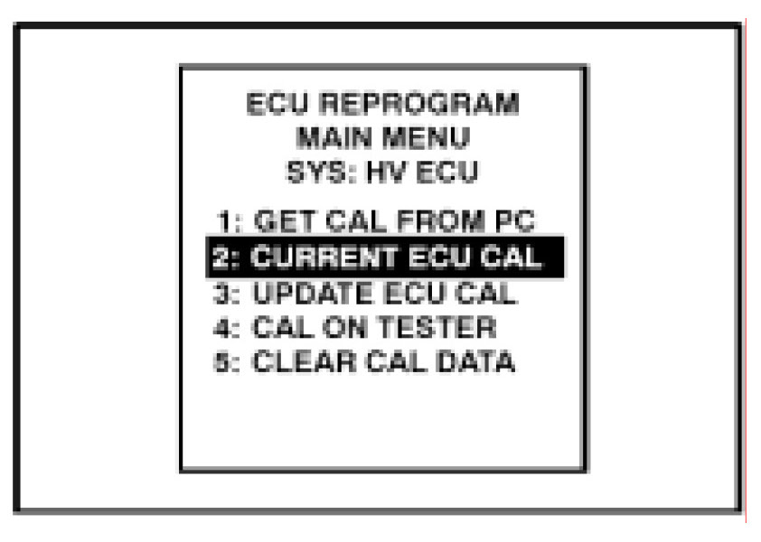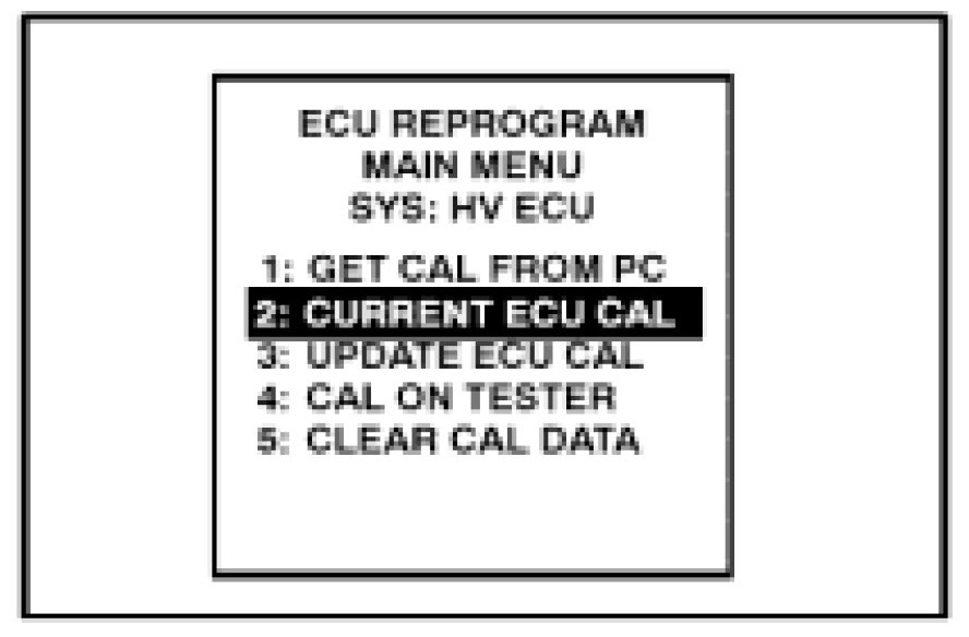 22. Select "2. CURRENT ECU CAL" from the "ECU REPROGRAM" main menu.