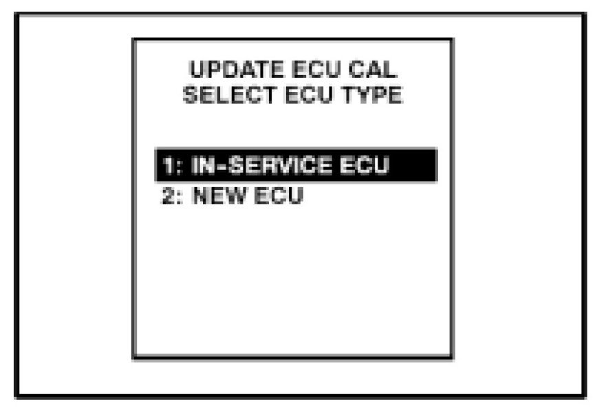 3. Select "1: IN--SERVICE ECU" from "UPDATE ECU CAL SELECT ECU TYPE" menu.