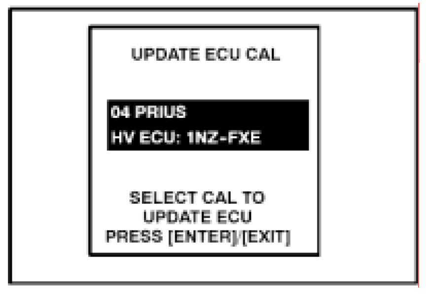 If the Diagnostic Tester displays "YES" instead of "NO," the HV ECU has been reprogrammed already. Press the "EXIT" key and turn off the Diagnostic Tester. Proceed to Recalibration Label Installation.