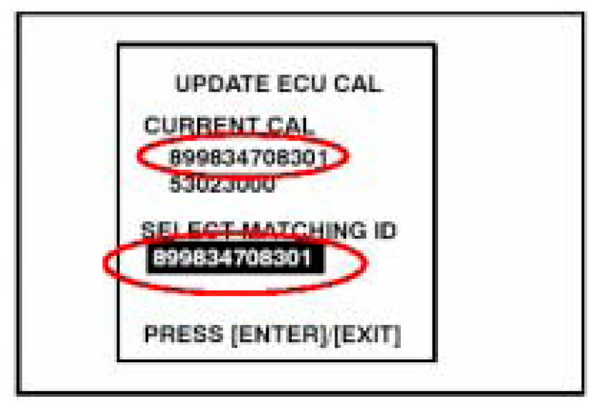 10. Select the current matching calibration ID that is currently on the vehicle.
