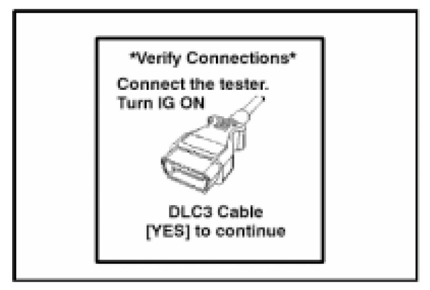 - The Diagnostic Tester is firmly connected to the DLC connector.