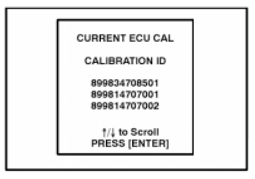 16. Confirm that the Diagnostic Tester displays the following calibration ID: