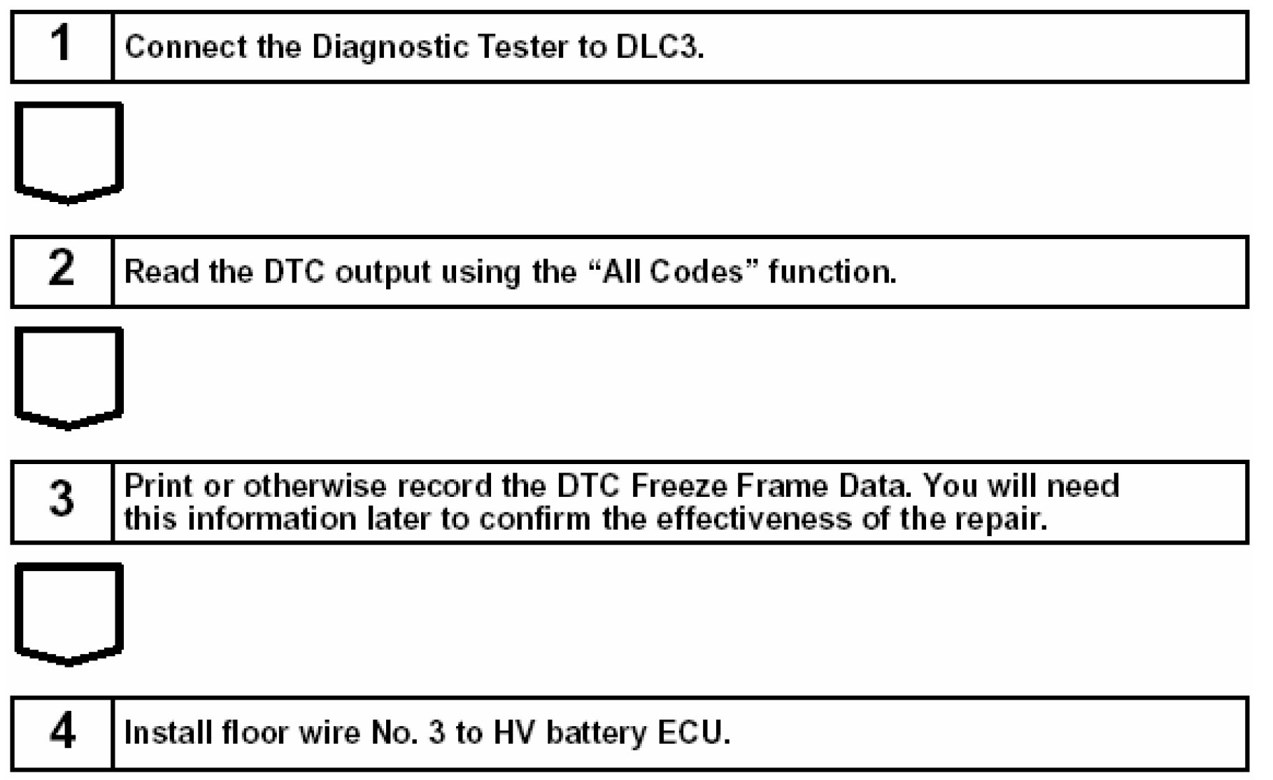 Some 2004 model year Prius vehicles may exhibit a Hybrid System & M.I.L. Warning Lights "ON" with DTCs P3000, P3056 and/or other DTCs. Review of freeze frame data may indicate that all HV Battery Cell Voltages are 0, however, the vehicle operates correctly. The following procedure has been developed to improve this condition.