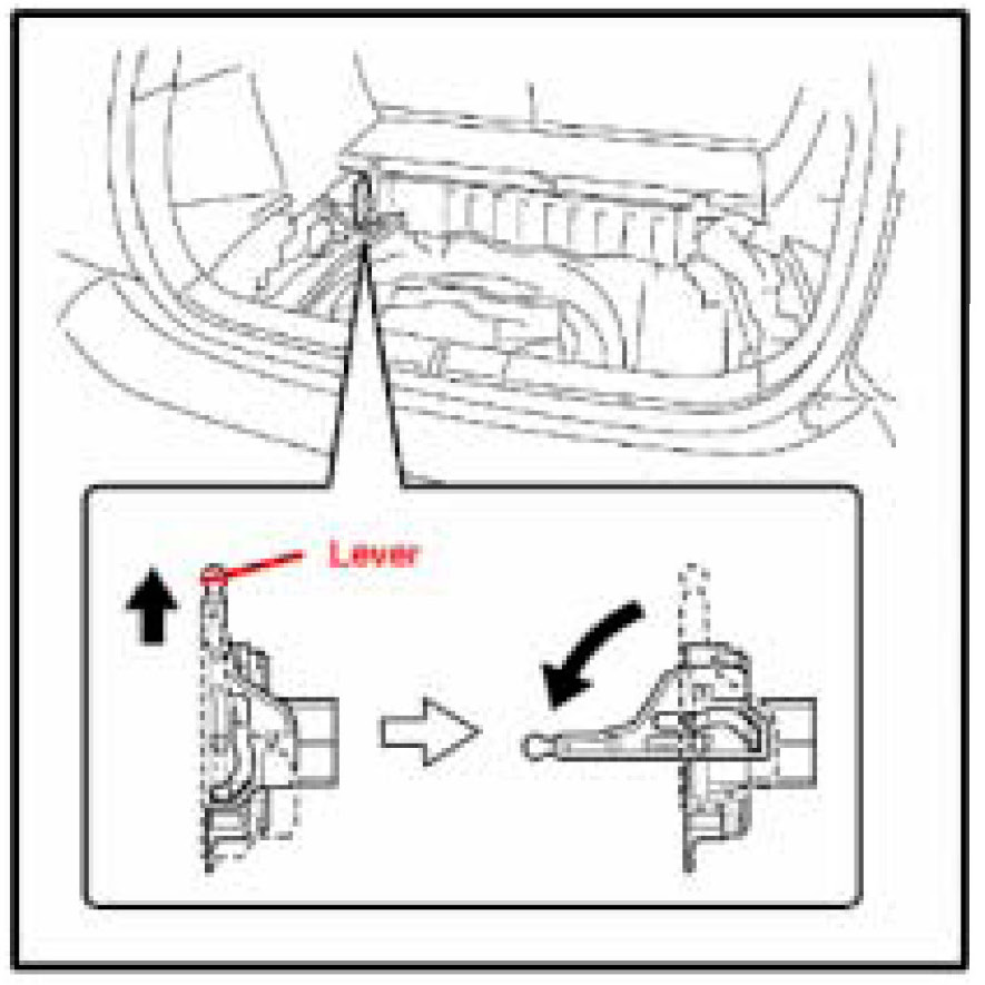 a. Slide up the lever of the service plug grip. Remove the service plug grip while turning the lever to the left.