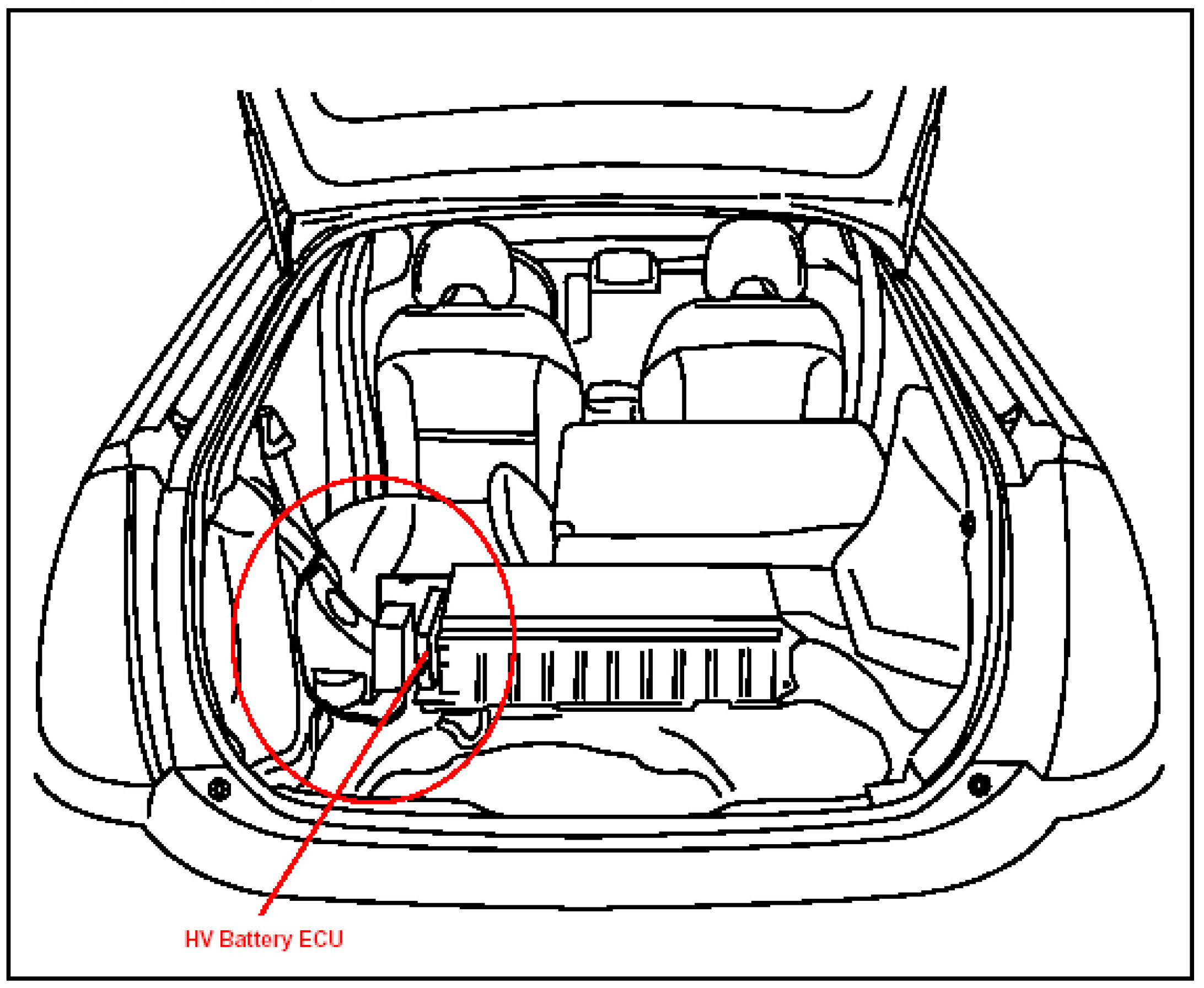 3. Remove Trunk Floor Panels and Trim Panels to Access the HV Battery on the Driver's Side of the Vehicle as shown.