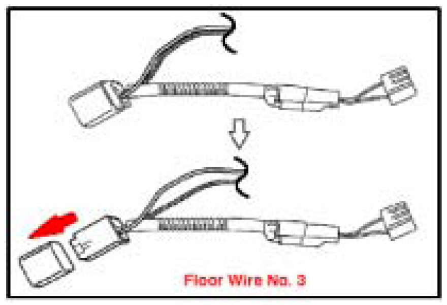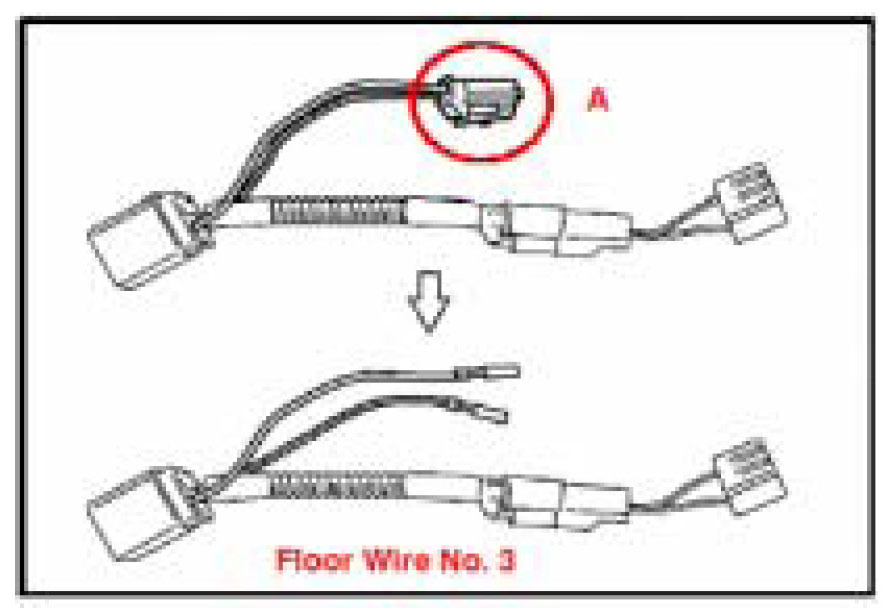 a. Remove the connector (A) from the Floor Wire No. 3. It is only included for the protection of the terminals during shipping and will no longer be needed.