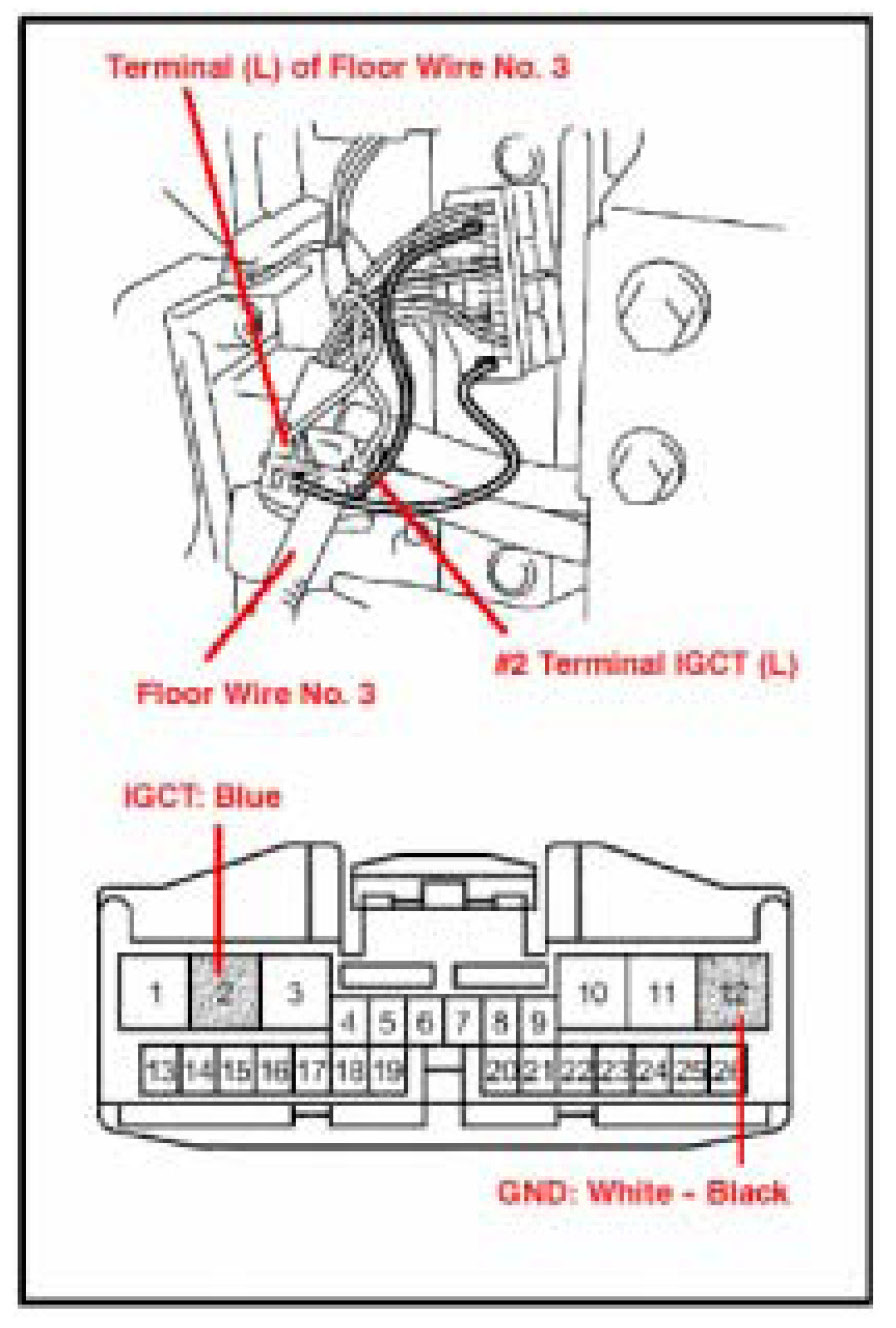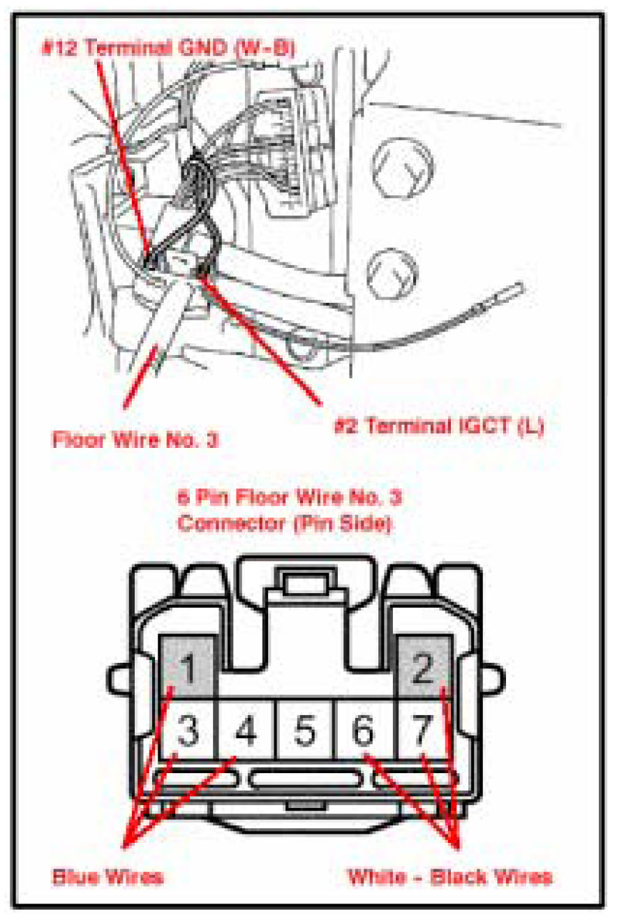 e. Install #2: terminal IGCT wire (blue), which was removed from the B11 connector, to the #1 pin of the #6 pin floor wire No. 3 connector.