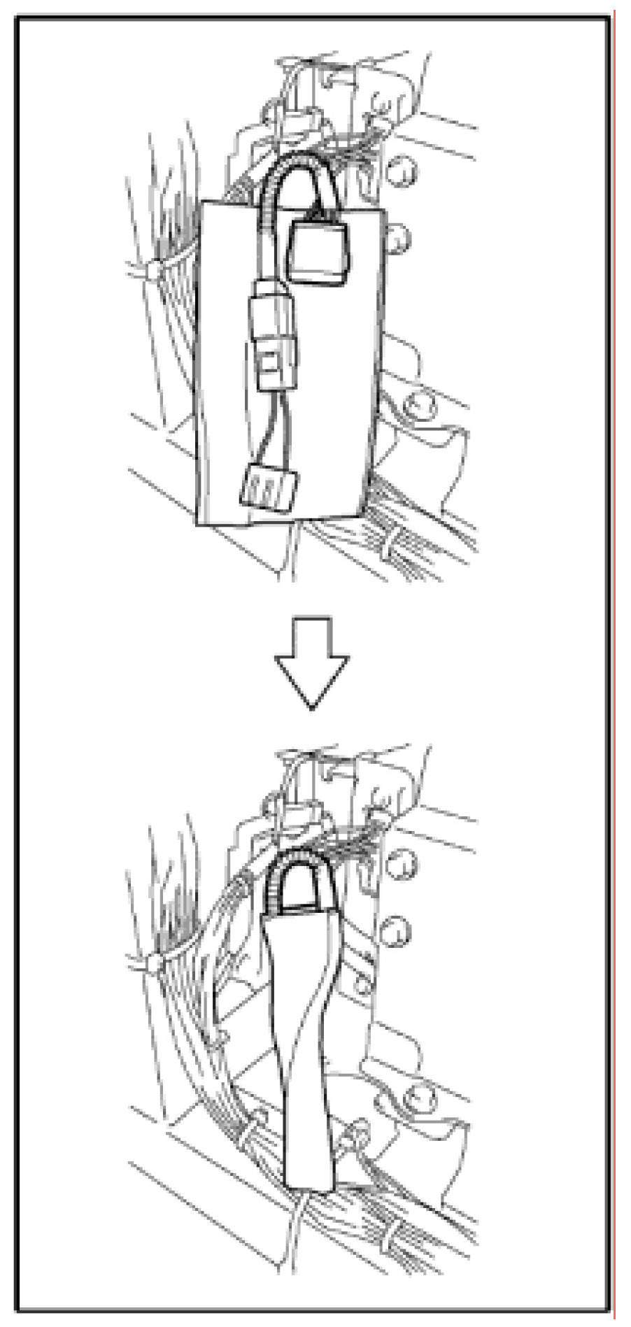Insert the floor wire #3 wrapped with sponge between the battery ECU and the battery plug.