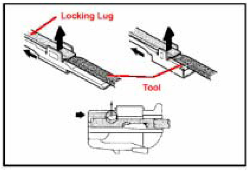 a. The locking device must be disengaged before the terminal locking clip is released and the terminal is removed from the connector.