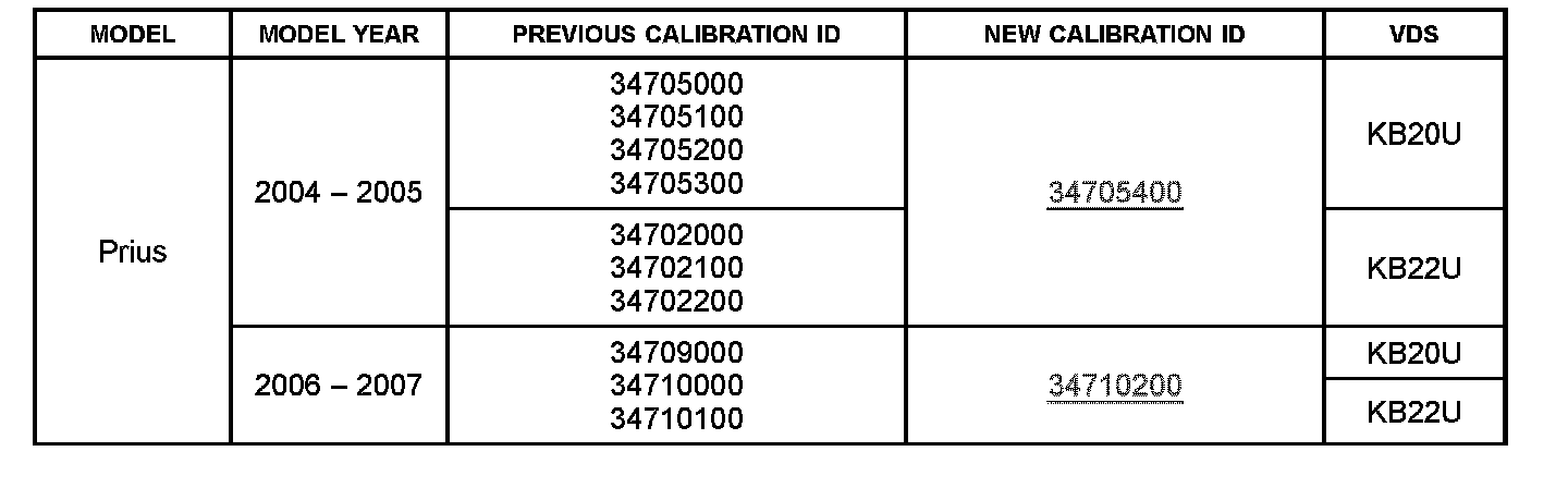 ^ Calibration ID(s) [Refer to the Calibration Identification Chart for the NEW CALIBRATION ID]