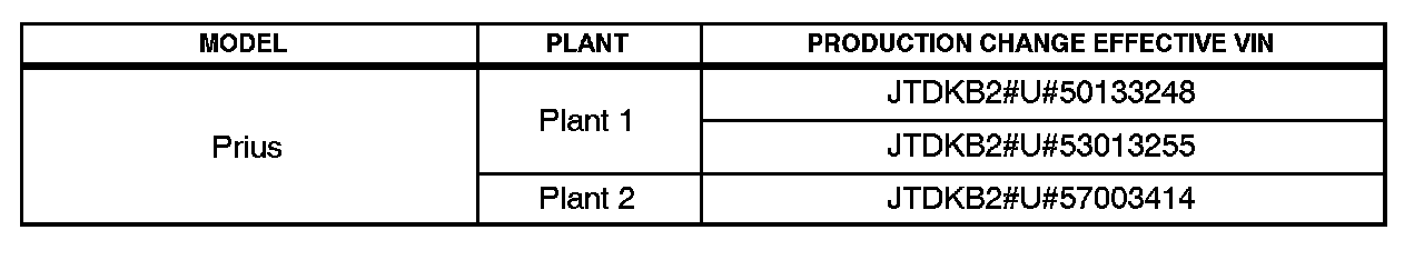 ^ 2005 model year Prius vehicles produced BEFORE the Production Change Effective VINs shown.