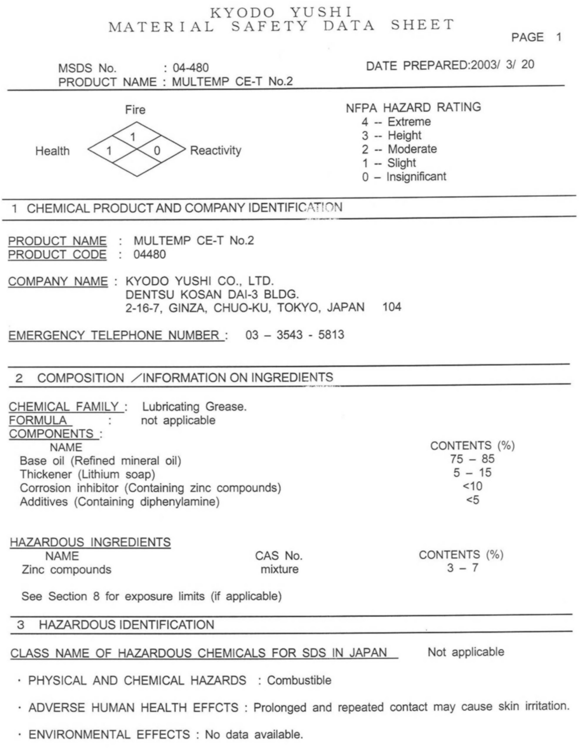 VIII. Material Safety Data Sheets