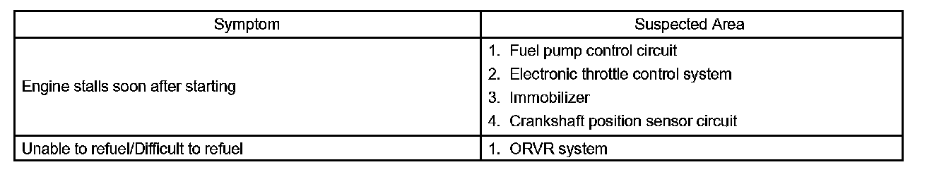 When the malfunction is not confirmed in the diagnostic trouble code check and the problem still can not be confirmed in the basic inspection, use this table and troubleshoot according to the priority order.
