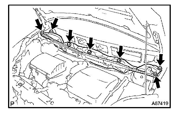 c. Remove the 7 bolts, then remove the cowl top panel outer front.