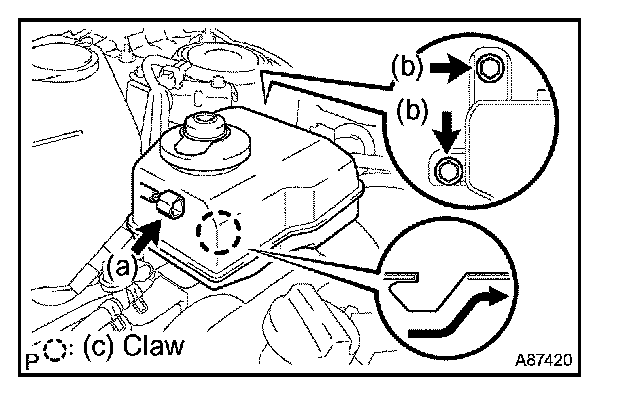 c. Separate the claw fitting, then remove the brake master cylinder reservoir.
