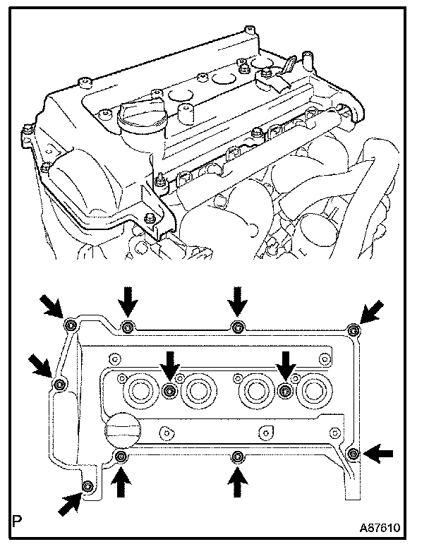 - Install the cylinder head cover within 3 minutes after applying seal packing.