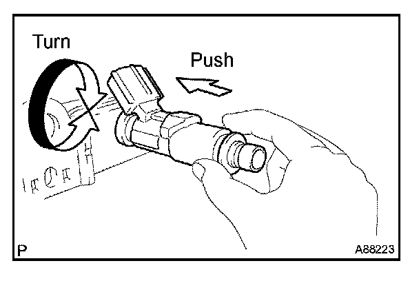 c. Apply a light coat of spindle oil or gasoline to the O-ring again, then turning the fuel injector right and left to the fuel delivery pipe.