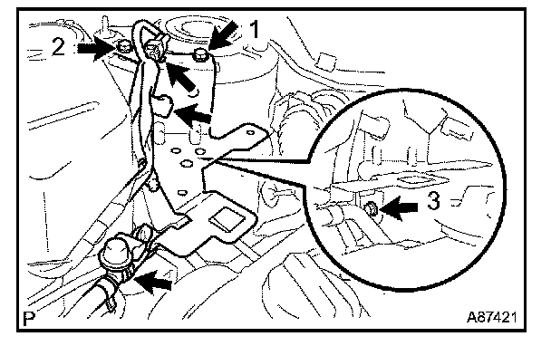 b. Tighten the 3 bolts with the specified torque in the sequence shown in the illustration.