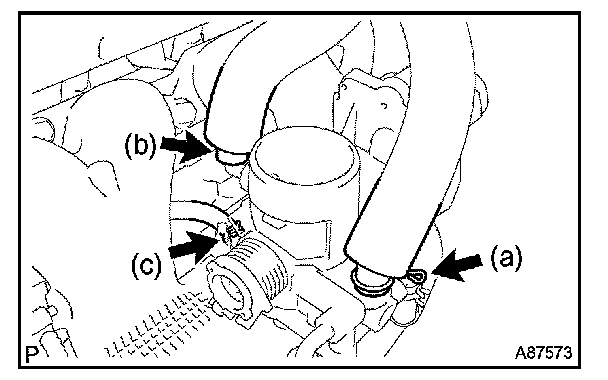 b. Disconnect the ventilation hose No. 2 from the throttle with motor body.