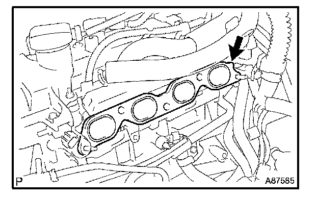 l. Remove the 3 bolts and 2 nuts, then remove the intake manifold.