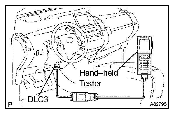 b. Connect the hand-held tester to the DLC3 at the lower part of the instrument panel.