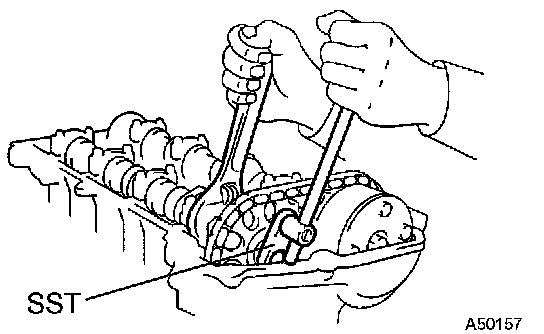 HINT: If a 3.0 mm (0.118 inch) diameter bar cannot be inserted into the hole of the stopper plate, rotate the camshaft No. 2 slightly to the left and right. Then a 3.0 mm (0.118 inch) diameter bar can be inserted easily.