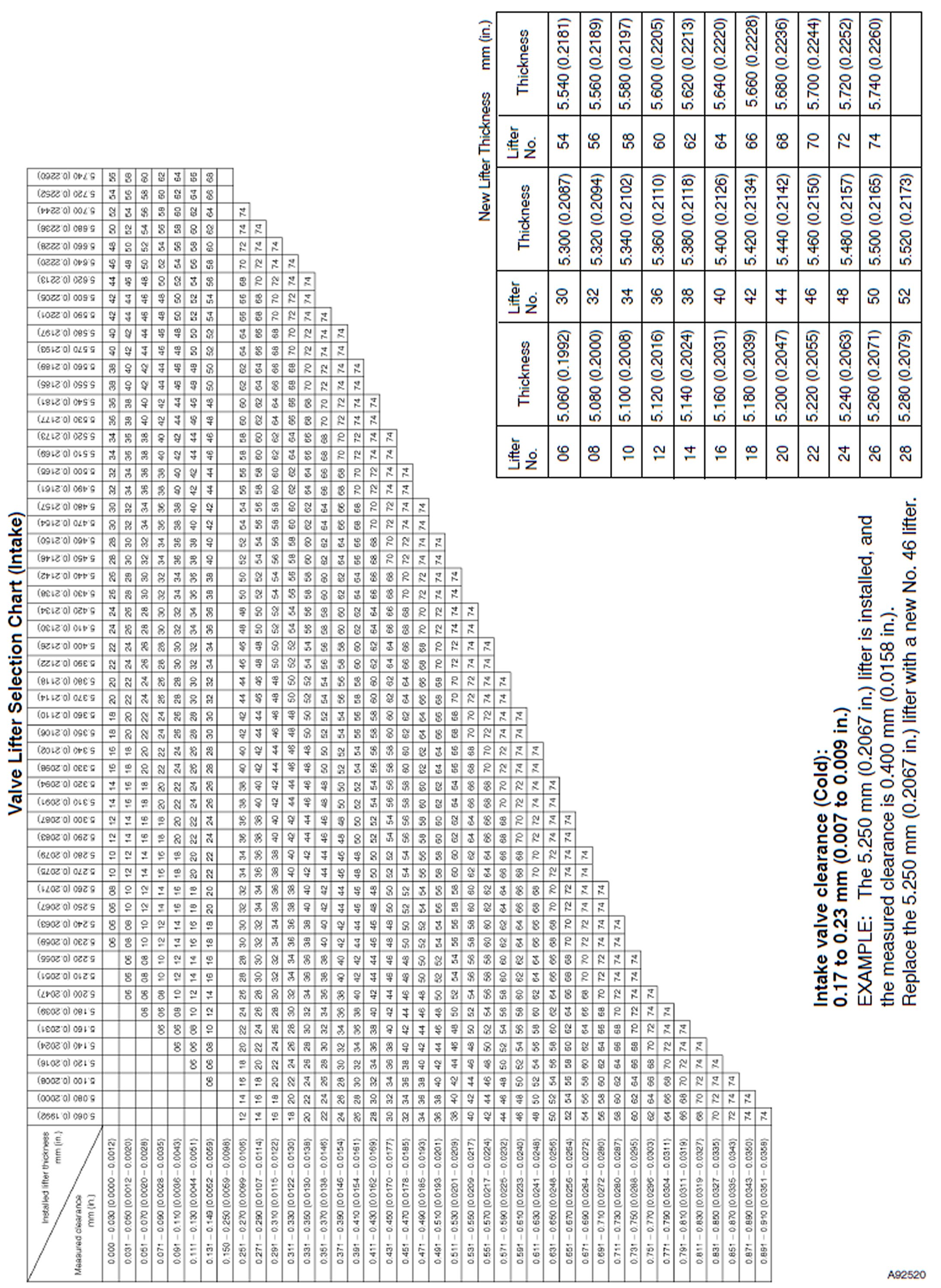 Valve Lifter Selection Chart (Intake)