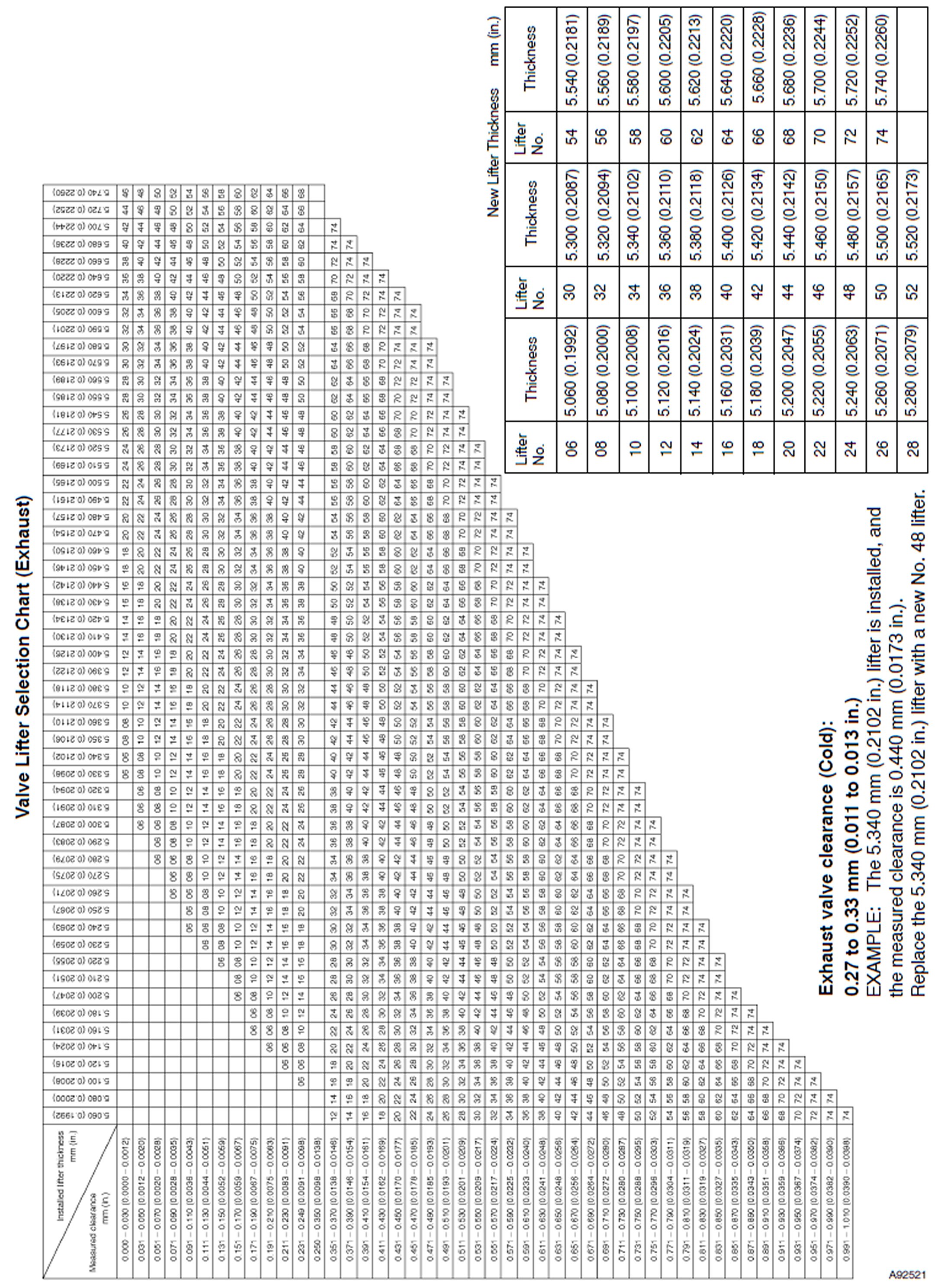 Valve Lifter Selection Chart (Exhaust)