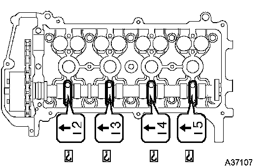 l. Remove the camshaft bearing caps No. 2 in the sequence shown in the illustration.