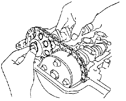 t. Hold the chain as illustrated, then install the camshaft and camshaft timing gear assembly so that the paint mark of the chain and the timing mark of the camshaft timing gear assembly are aligned.