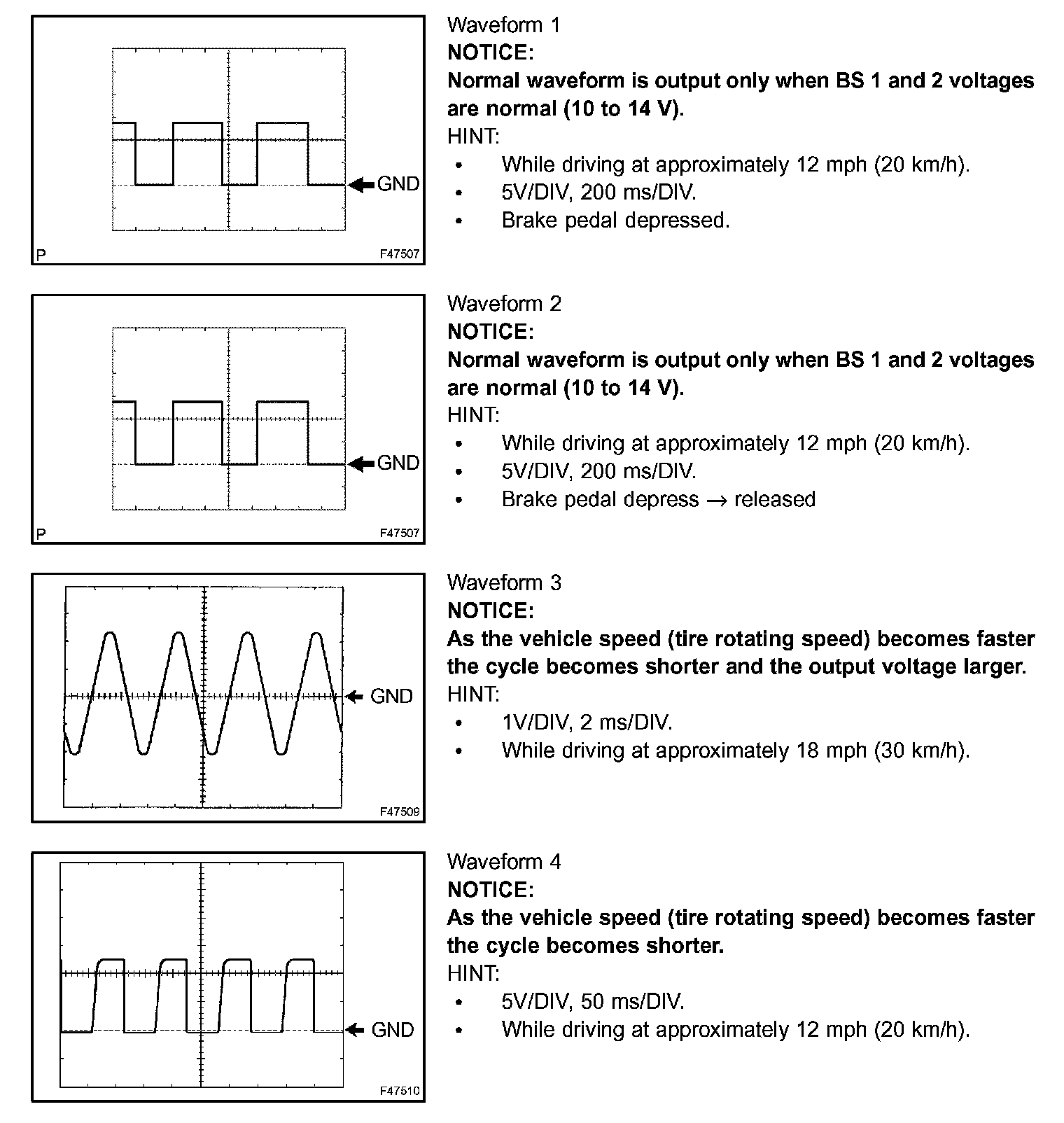 c. Using an oscilloscope, check that the pulse generates between each terminal or between each terminal and the body ground.