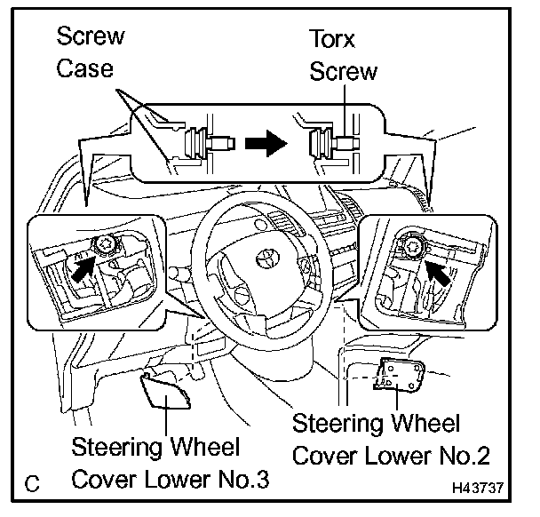 a. Using a screwdriver, remove the steering wheel cover lower No.2.