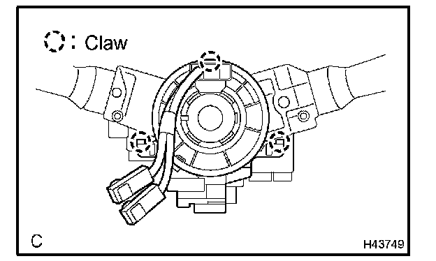 b. Disengage the 3 claws and remove the spiral cable sub-assy.