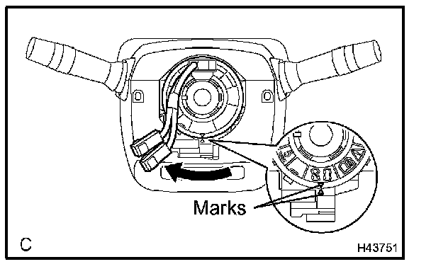 d. Rotate the spiral cable sub-assy clockwise approximately 2.5 turns to align the marks.