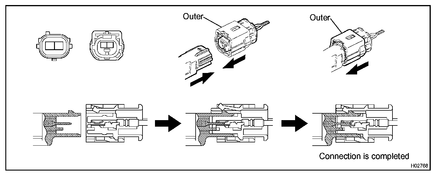 a. Connect the connector as shown in the illustration. (When locking, make sure that the outer returns to its original position and a click sound can be heard.)