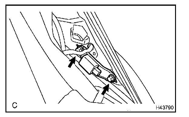 - When installing the airbag sensor rear, be careful that the SRS wiring does not interfere with other parts and that it is not pinched between other parts.
