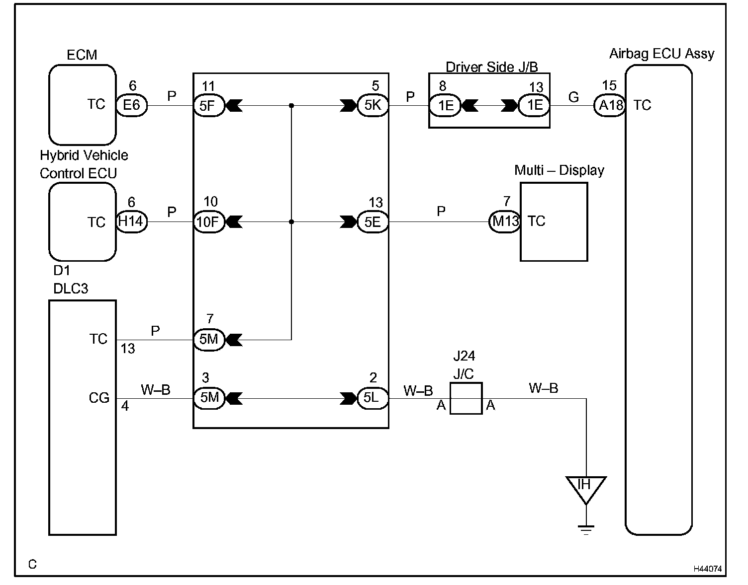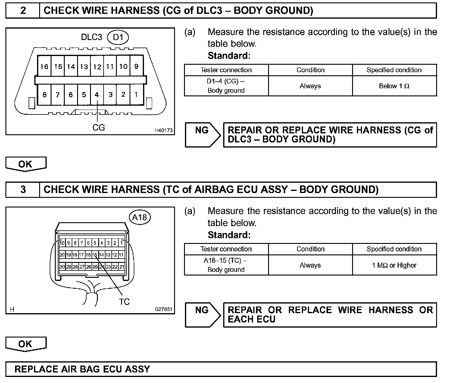 HINT: When each warning light keeps blinking, a ground short in the wiring of terminal TC of the DLC3 or an internal ground short in each ECU is suspected.