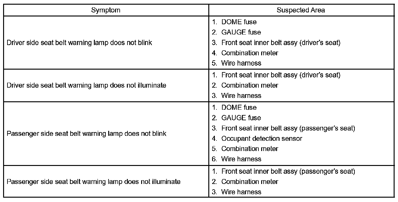 Problem Symptoms Table - Seat Belt Warning System: