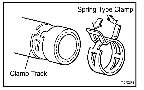 c. When reusing a hose, attach the clamp on the clamp track portion of the hose.