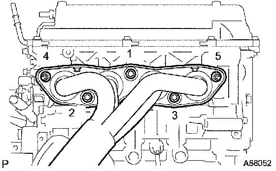 Tighten the 3 bolts and 2 nuts in the sequence shown in the illustration.