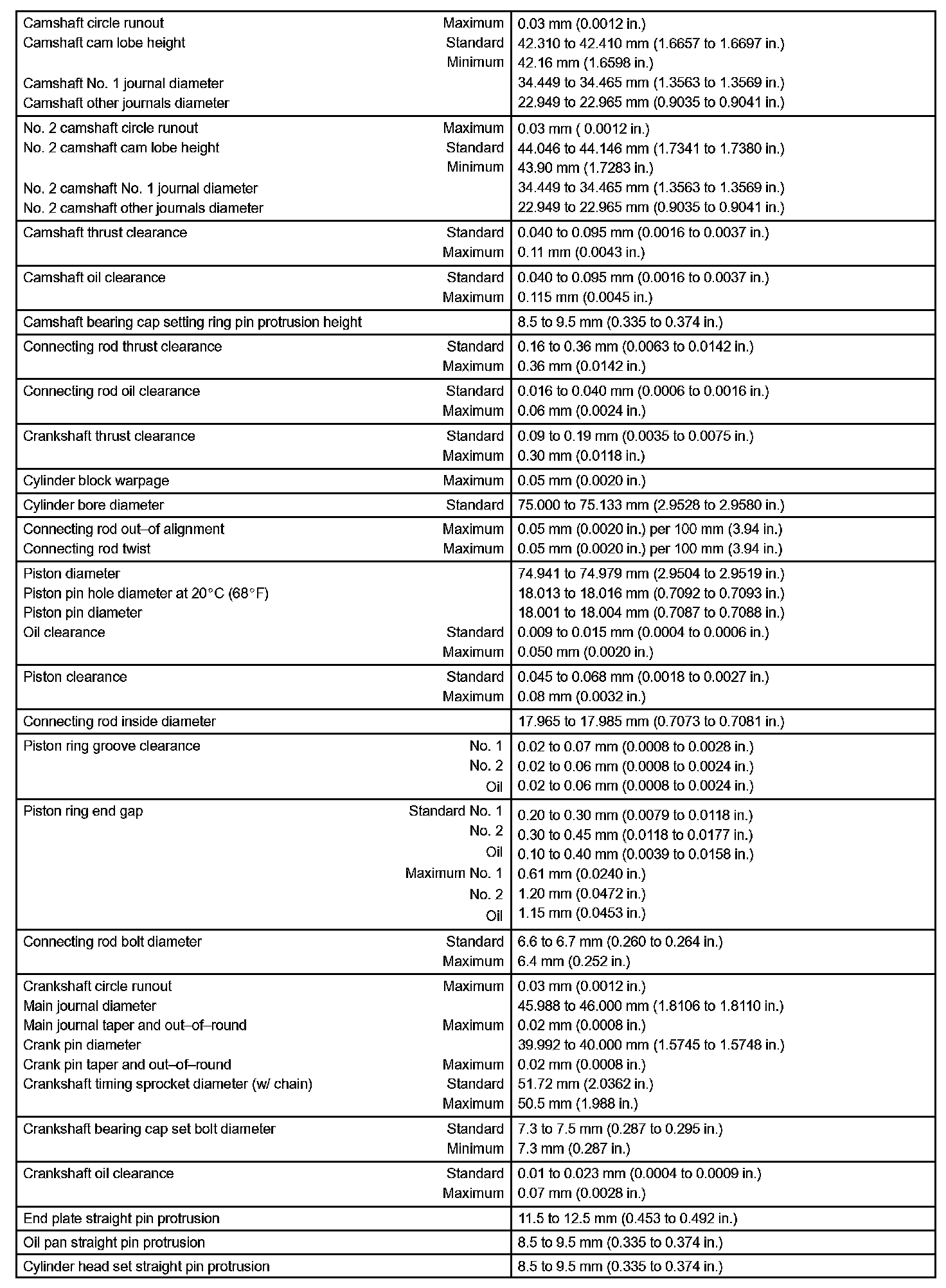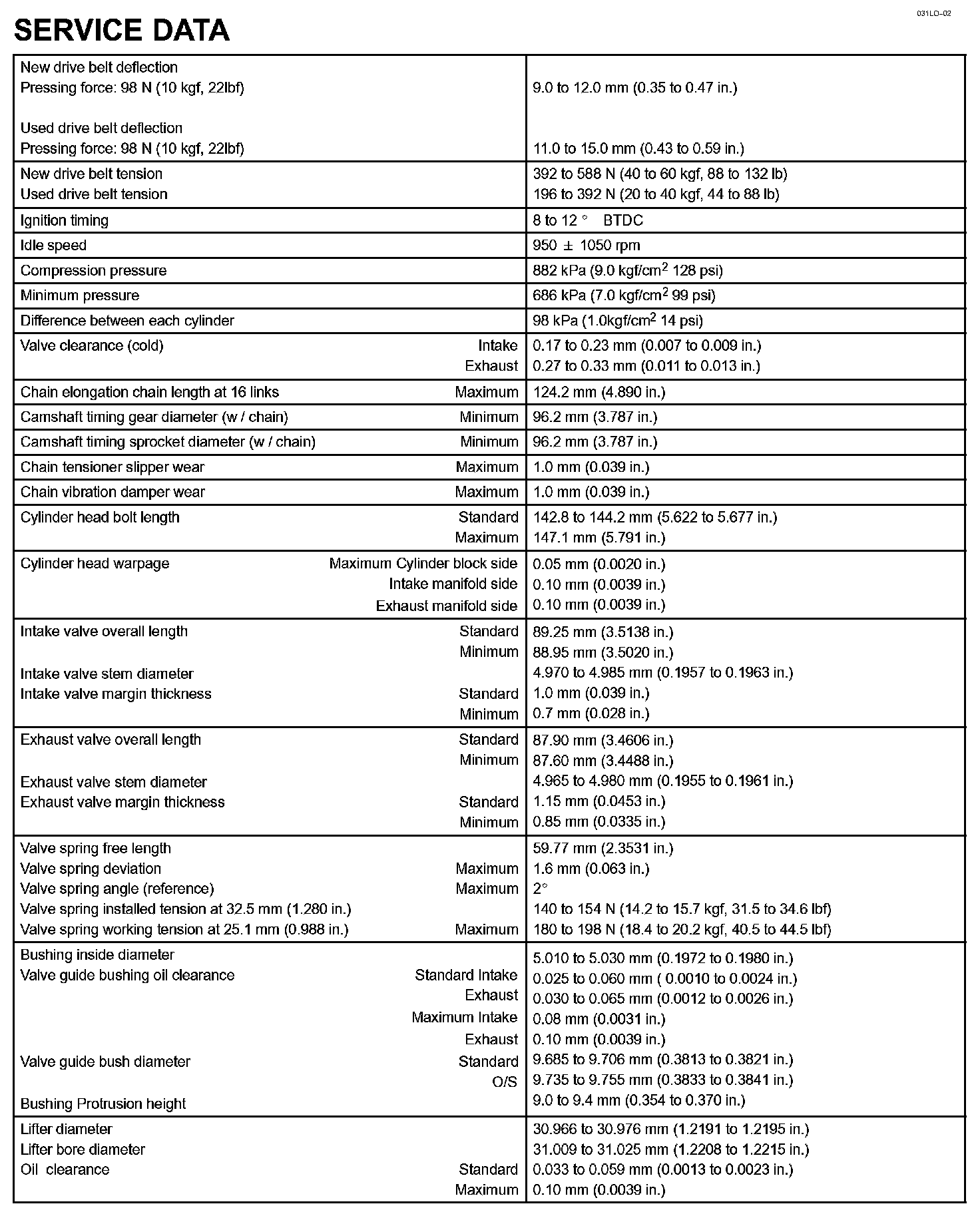 Engine Mechanical - Service Data Part 2: