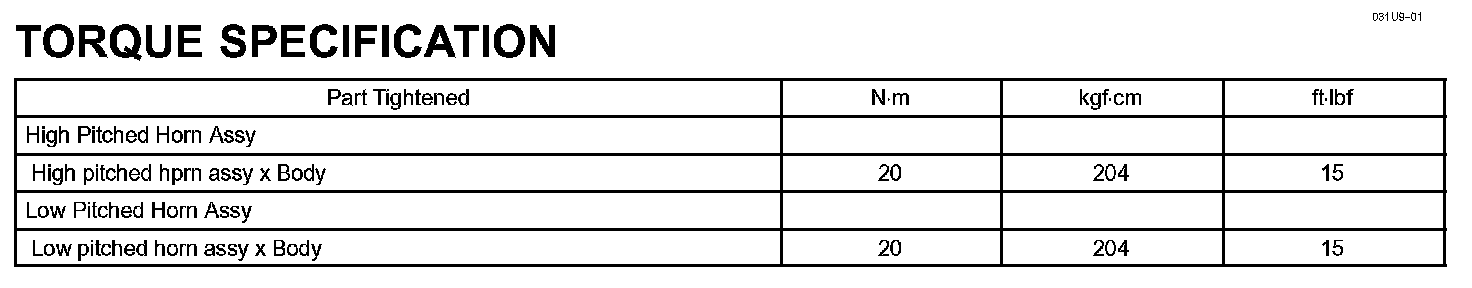 Horn - Torque Specification: