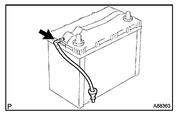 a. Remove the grommet of the battery room ventilation hose from the vehicle.