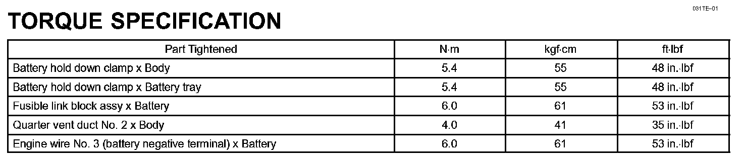 Starting & Charging - Torque Specification: