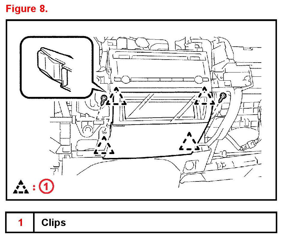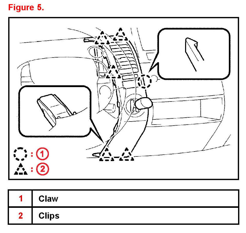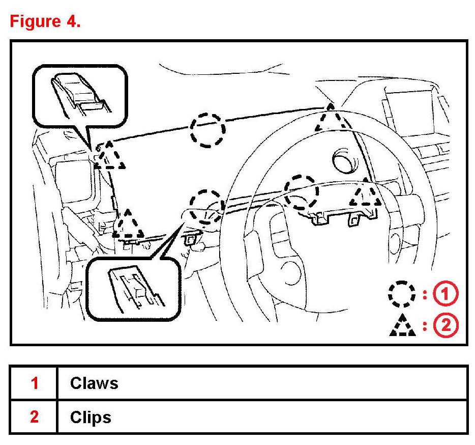 B. Detach the 4 clips and remove the instrument cluster finish panel.