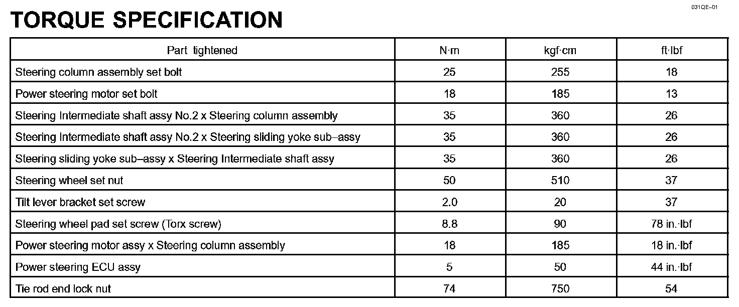 Steering Column - Torque Specification: