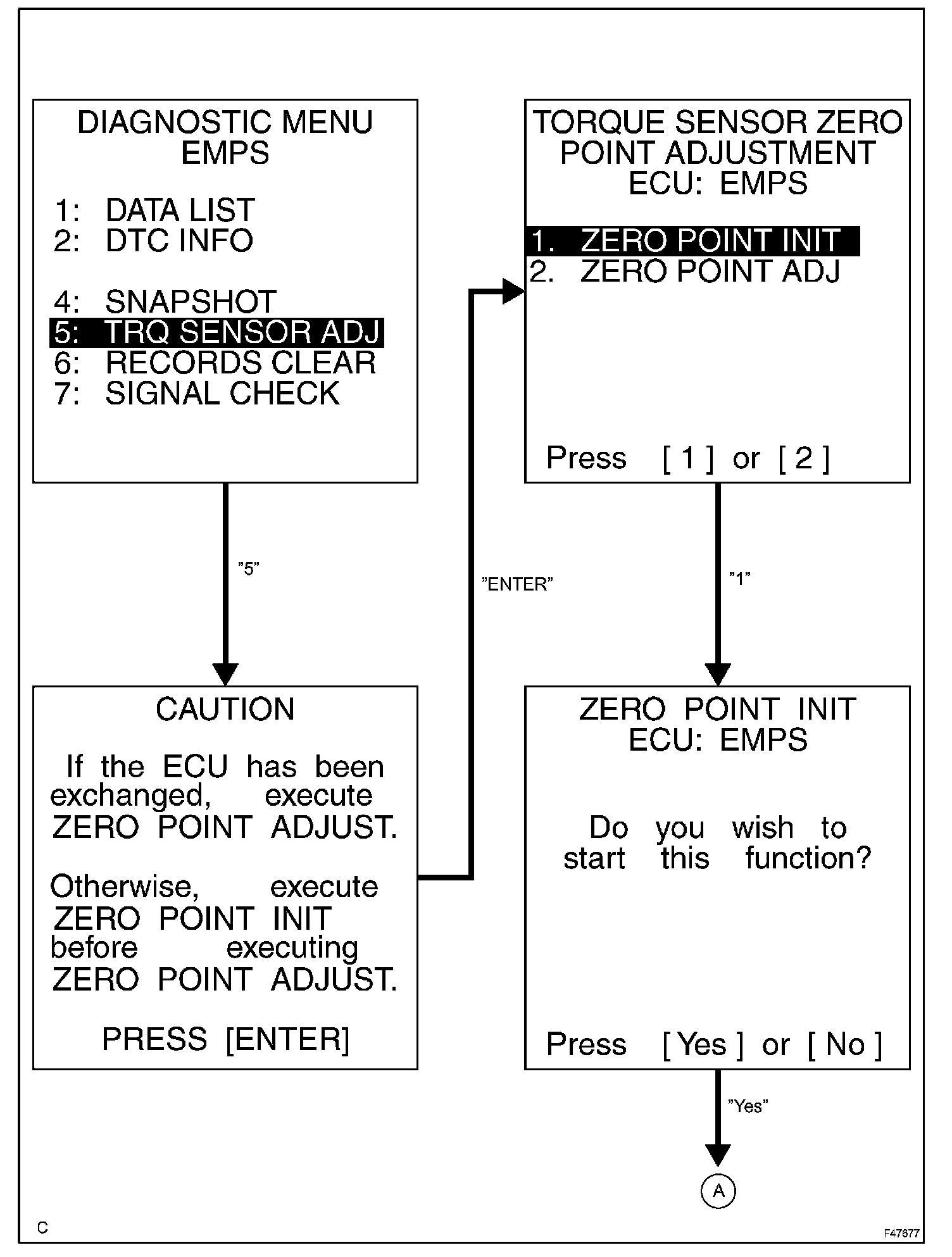 NOTE: Do not turn the steering wheel while initializing the zero point calibration signal.
