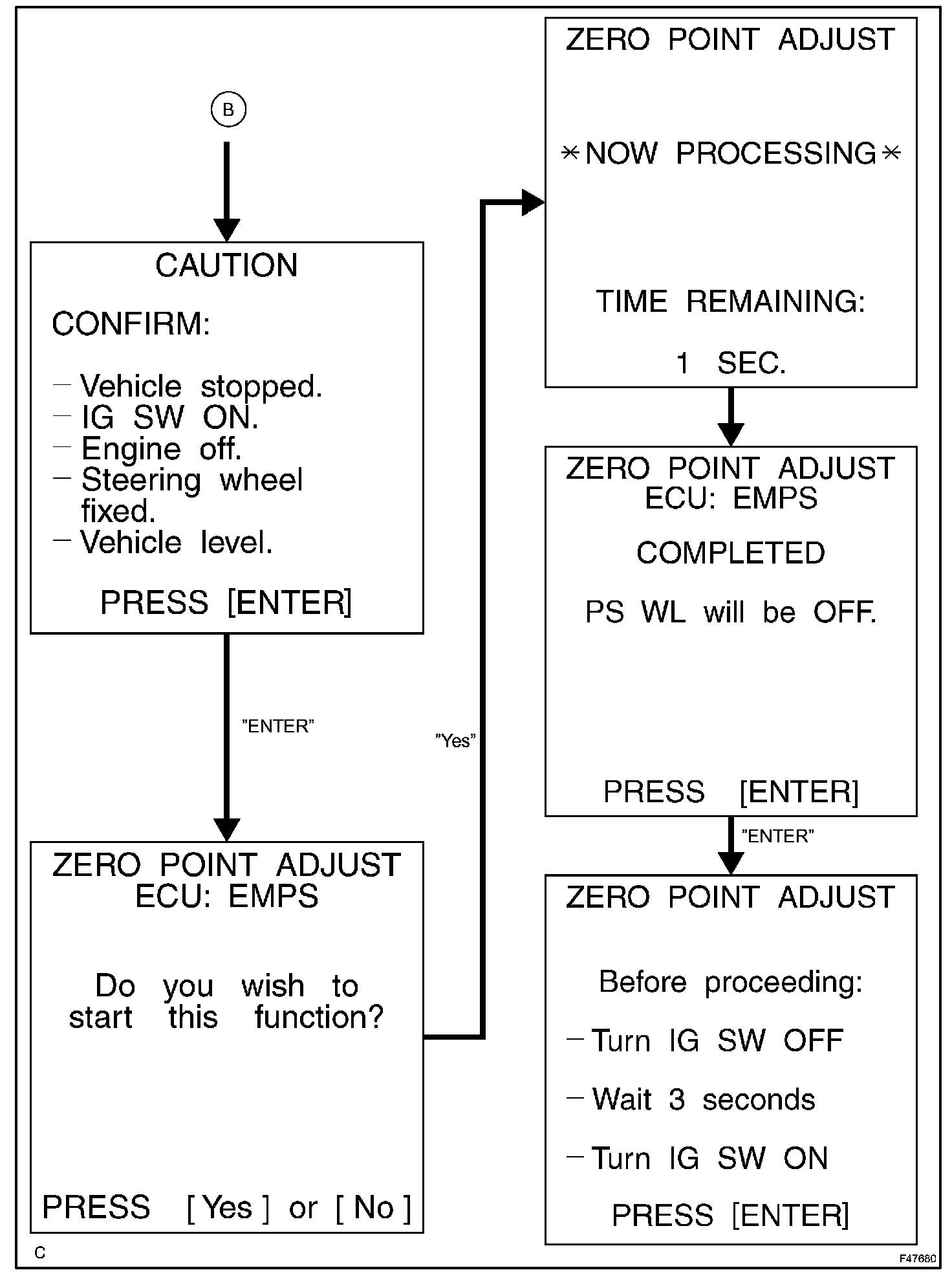 NOTE: Zero point calibration cannot be carried out with the power switch on (IG) after initialization of the zero point calibration signal is completed.
